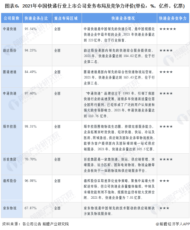 4、中国快递行业企业布局及竞争力评价