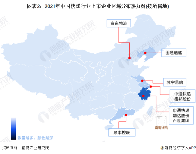 快递行业的上市公司中,中通快递、韵达股份、圆通速递、申通快递、顺丰控股、百世集团、德邦快递、京东物流快递业务遍布全国各地,并且经过多年发展,已经成为快递行业头部企业。