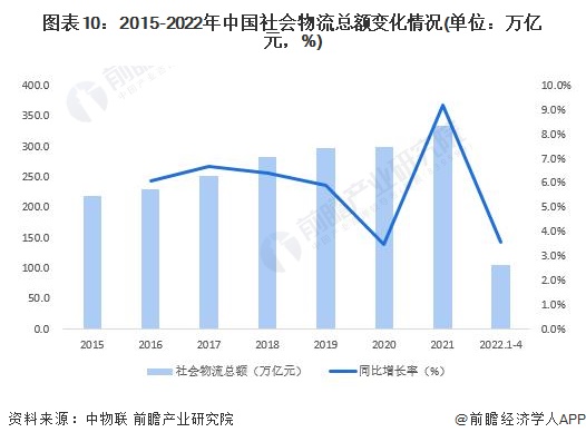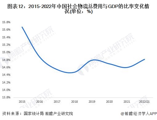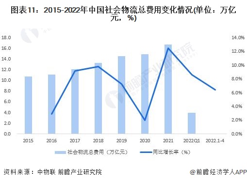 注:中物联2022年5月25日公布的2022年1-4月的物流运行分析数据中,仅公布了社会物流总费同比增速情况。