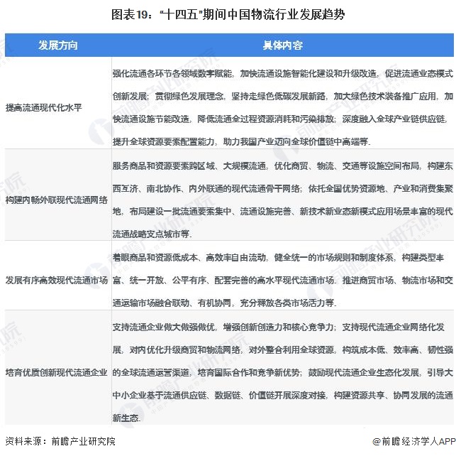 1、“十四五”物流行业发展趋势:持续推进绿色低碳高质量发展,优化产业布局结构