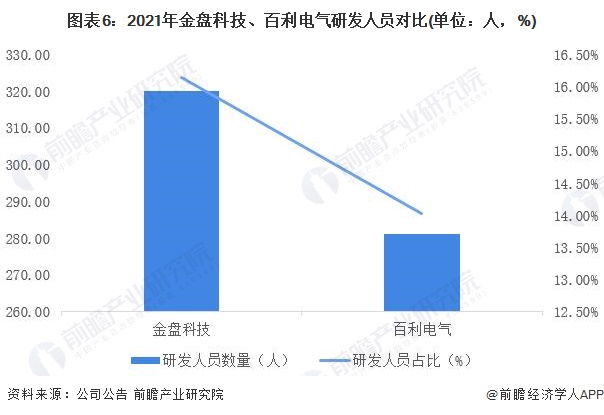 从无功补充装置业务研发情况来看,金盘科技在研发投入与研发人员数量均领先于百利电气。