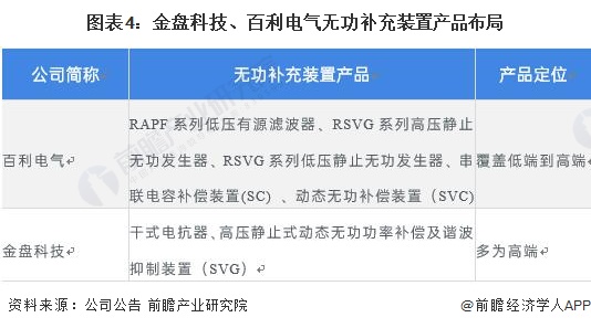 4、无功补充装置产品布局情况对比:金盘科技定位高端