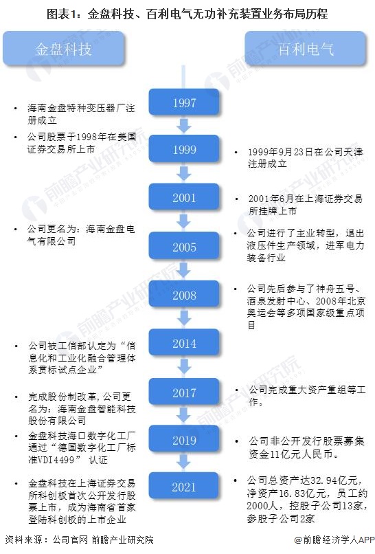 目前,中国无功补充装置行业龙头企业分别是金盘科技、百利电气,两家企业在无功补充装置业务上的布局历程如下: