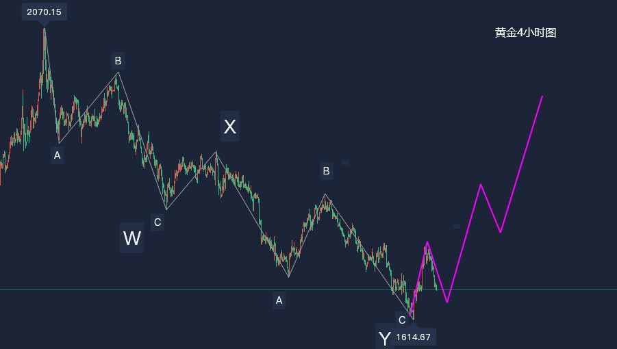1、第一种是2070下跌调整双重三浪,目前行情到1614已全部调整完成,现在的上涨是新的上升趋势,将展开新的推动浪结构。后面行情会逐步突破前期高点,再次测试2070.本周将先后公布美联储9月会议纪要和美国消费者物价指数,这对于加强美联储鹰派预期非常重要,并可能继续支撑美元。黄金在反弹后很难延续。