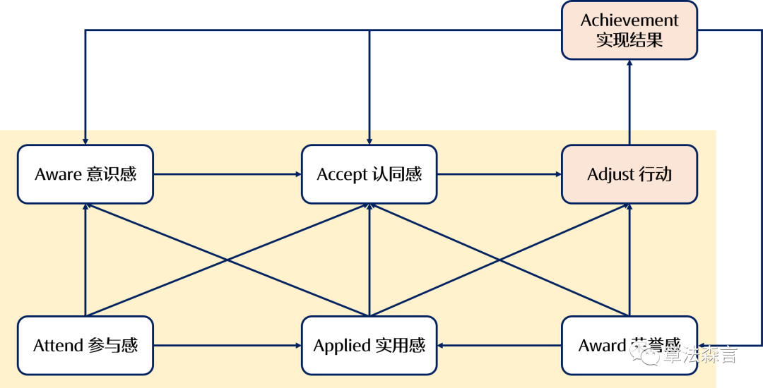 这五感不是独立的,彼此构成了一个感受网络,共同发生作用最终促进员工的行为调整,促进成果的实现。这个闭环又会反作用于文化的A5体验,从而形成良性循环。