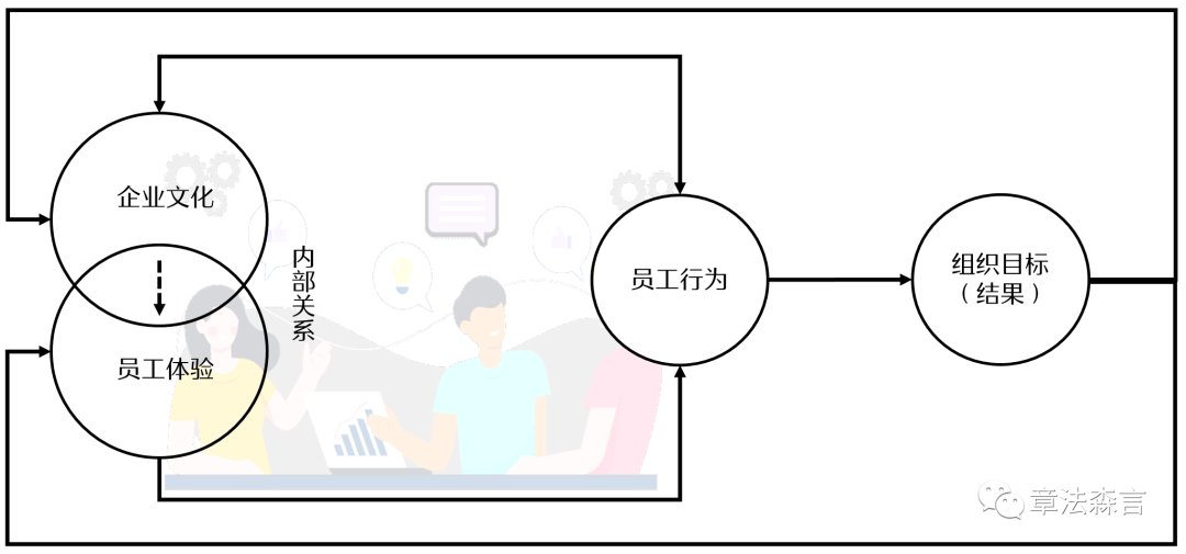 组织实现的结果,最后又会强化企业文化,影响员工体验,构成一个循环路径。