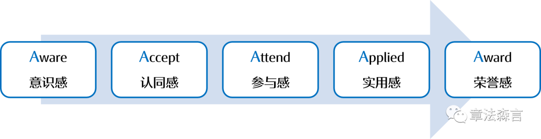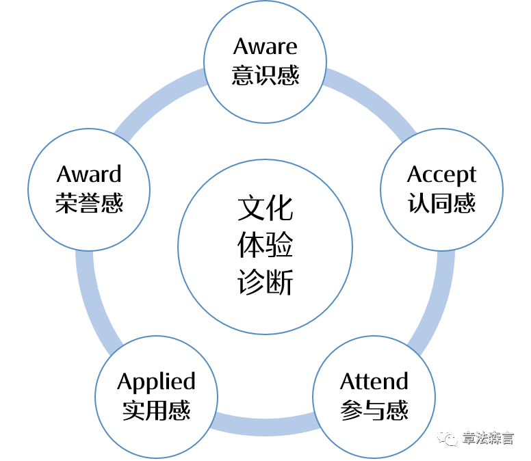 针对这道填空题,笔者提出了一个员工企业文化体验的A5模型,即一个员工的企业文化体验要实现这5种程度。