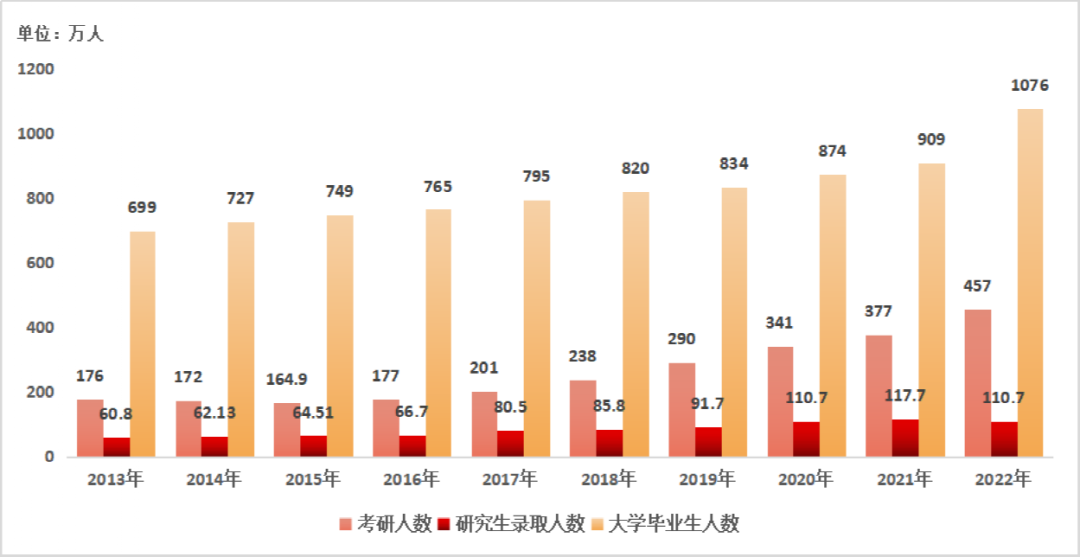 据悉,2022年研究生考试人数达到457万,与之相随的是考研国家线整体普遍上涨,2023年预计将突破500万大关,再次引发了大家的强烈关注和热议。