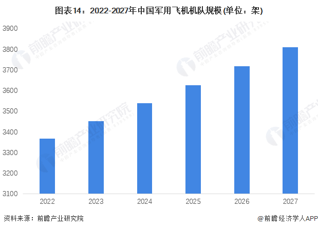 2、军用飞机制造:预计2027年我国军用飞机规模突破3800架