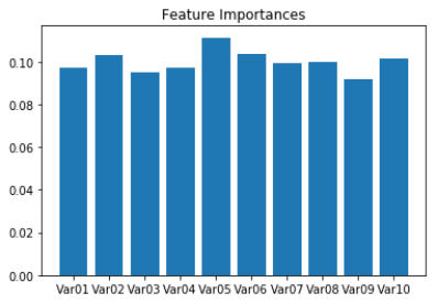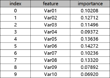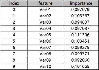 通过上图展现的特征Permutation Importance系数结果可知,对模型重要性最高的特征变量是Var06(0.14272),对模型重要性最高的特征变量是Var10(0.06920),这个分析结果与前边特征Feature Importances系数结果(图5)是有一定区别的。同时,根据Feature Importances系数分布(图6)与Permutation Importances的系数分布(图10)的对比可以直观了解到,二者分布形态还是有较明显差异。对于图6展示的Feature Importances系数分布,体现出各特征变量的重要性比较接近,而图10展示的Permutation Importances系数分布可以将特征变量的重要性进行了较好的区分,显然后者更有利于特征变量的筛选,以及对模型特征重要性的客观评估,这也是Permutation Importances系数的优势。