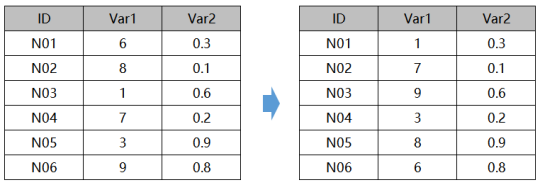 围绕以上Feature Importance的应用场景与特点属性,本文将介绍一种更优的特征筛选方法:Permutation Importance(排列重要性),此方法本质上同样反映的是特征重要性系数,但可以有效解决上文介绍Feature Importance系数存在的缺点。对于Permutation Importance,核心思想是将特征的取值分布随机打乱,同一个特征有了不同的数据排列属性,自变量与因变量的关系也有所区别,这样目的是为了更全面的检验当前特征变量对目标变量的影响程度,通过特征重要性系数Permutation Importance筛选得到的特征,能够较好的保证模型对新测试数据的泛化能力。通过对特征变量的取值分布进行随机打乱,如果在测试数据上可以较明显的增加模型损失,说明此特征对模型很重要;如果在测试数据上对模型的损失影响不大,说明对此特征对模型不重要。这里简要说明Permutation Importance场景下特征分布随机排列的情形,图1所示为特征Var1数据重新随机排列的示意图,在实际场景中算Permutation Importance系数时,往往会对特征变量进行多次排列,从而算出重要性系数的平均值,这样在一定程度避免分布的偶然性,特征系数结果显得更为客观。