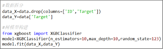 本文选取的样本数据包含5000条样本与12个字段,具体数据样例如图2所示。其中,字段ID为样本主键;Var01~Var10为特征变量,分布类型均为数值型;Target为目标变量,取值类型为二分类型(0/1)。为了保证特征重要性系数的生成,我们采用XGBoost分类算法来的构建模型,模型训练过程如图3所示。