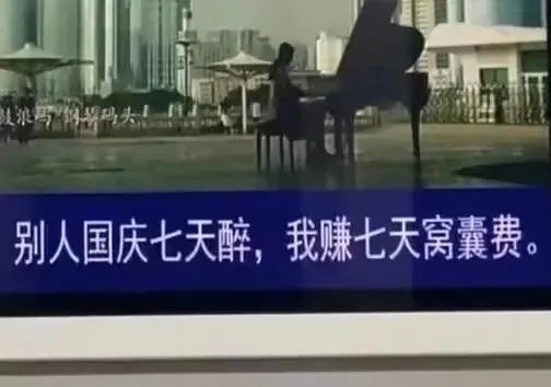 搭配着淡定弹古筝的画面还有一种别样的灰色幽默