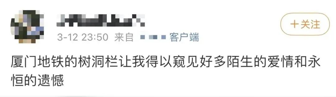 最近圈主沉迷于看厦门地铁树洞