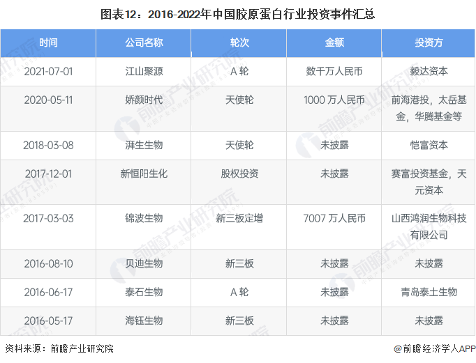 尽管近几年胶原蛋白产品市场规模逐渐扩大,但是从投融资事件来看,胶原蛋白行业的热度在不断下降,2016年胶原蛋白行业有投融资事件3起,而2020年及2021年行业内仅有投融资事件1起。