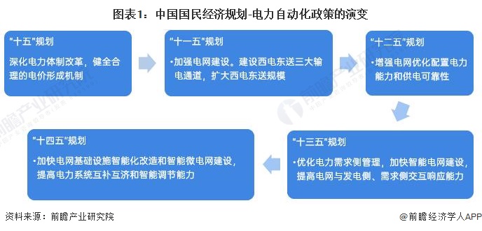 在我国的战略规划中,“智能电网、电力”的概念第一次出现在“十二五”的规划中,对于供电体系的优化配置提出了推进、加快发展的规划,“十四五”对于电力自动化的规划更加明确,提出智能化改造和智能微电网建设对加快国内大市场的建设和“碳达峰”任务的完成作出重要贡献。