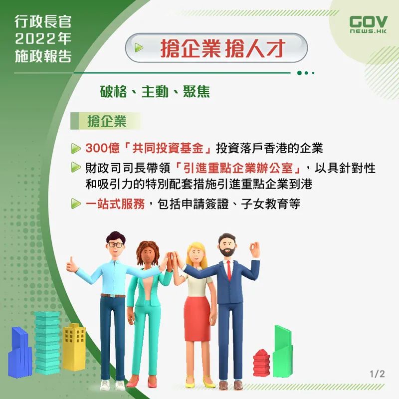 因此新一份《施政报告》也提出优化“科技人才入境计划”,撤销科技公司在计划下输入外来人才时必须增聘本地雇员的规定,以加快输入人才的步伐。与此同时,港府会让更多来港参与短期活动的访客无须申请工作签证,研究在现行科技专才、专业运动员等指定界别外,涵盖更多类别。即将成立的“人才服务窗口”会提供一站式服务,统筹入境事务处处理输入人才计划的申请,并提供支持服务,以及制定服务承诺以提升审批效率。此外,今年内会全面电子化签证申请服务。