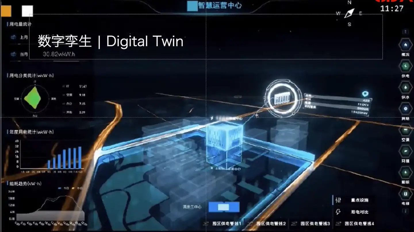 数字孪生现在用的最广的场景就是城市和城市中的智慧园区。数字孪生城市是目前城市化过程中包括城市建设最主要的最热的一个赛道。一个比较成熟的数字园区做得比较好的。因为在数字园区里,尤其是工厂,机械化程度比较高。对数字实体进行一个操作的话,可以直接映射到物理机械实体。比如中控关掉一个关掉或者打开某一个发动机,那么对应的物理实体的发动机就会产生相应的动作,去关闭或者打开,像在北京京东和美团会有很发达的比较先进的配送机器人。在数字空间来操作机器人,来让实体世界的机器人做出一些动作,就是一个数字孪生体的一个双向映射。数字孪生体其实给数字或者空间数据分析带来的一个契机,对于数据分析师来说,最头疼的一个事儿被解决了,就是数据来源的一个问题。整个数字孪生体一旦建立起来,可以实时不断地从物理世界获取源源不断的数据,尤其是空间数据,可以帮助分析师尤其是空间数据的分析师来做出想要的这个结果。