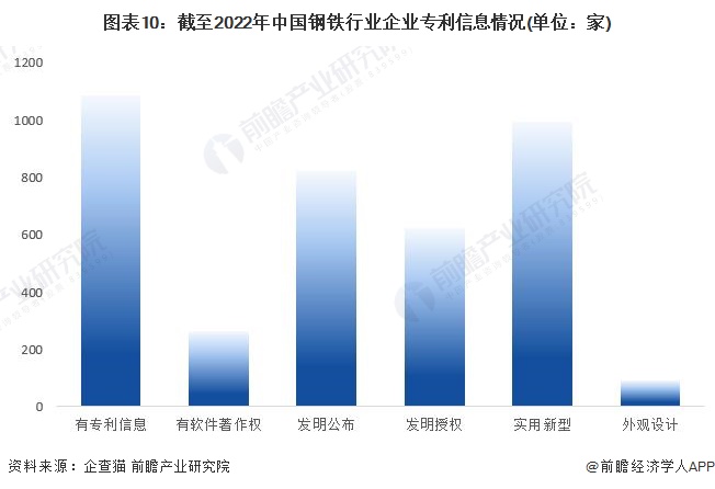 根据中国企业数据库企查猫,目前我国钢铁行业存续和在业的企业共8533家,其中1087家企业有专利信息,262家企业有软件著作权。在专利信息中,钢铁行业企业以实用新型专利为主,拥有实用新型专利的企业有955家,申请发明公布的企业有821家。