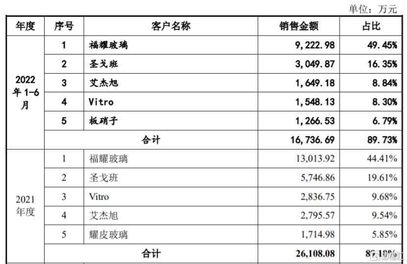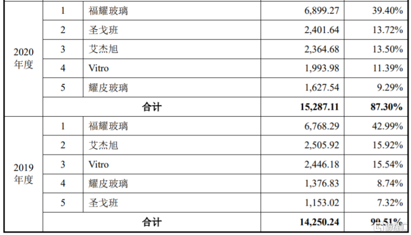 汽车玻璃行业集中度较高,全球前四大汽车玻璃厂商福耀玻璃、艾杰旭、板硝子和圣戈班的市场份额合计占比超过75%,汽车玻璃总成组件产品是汽车玻璃总成的重要组成部分。受此影响,科力股份的客户集中度也较高。