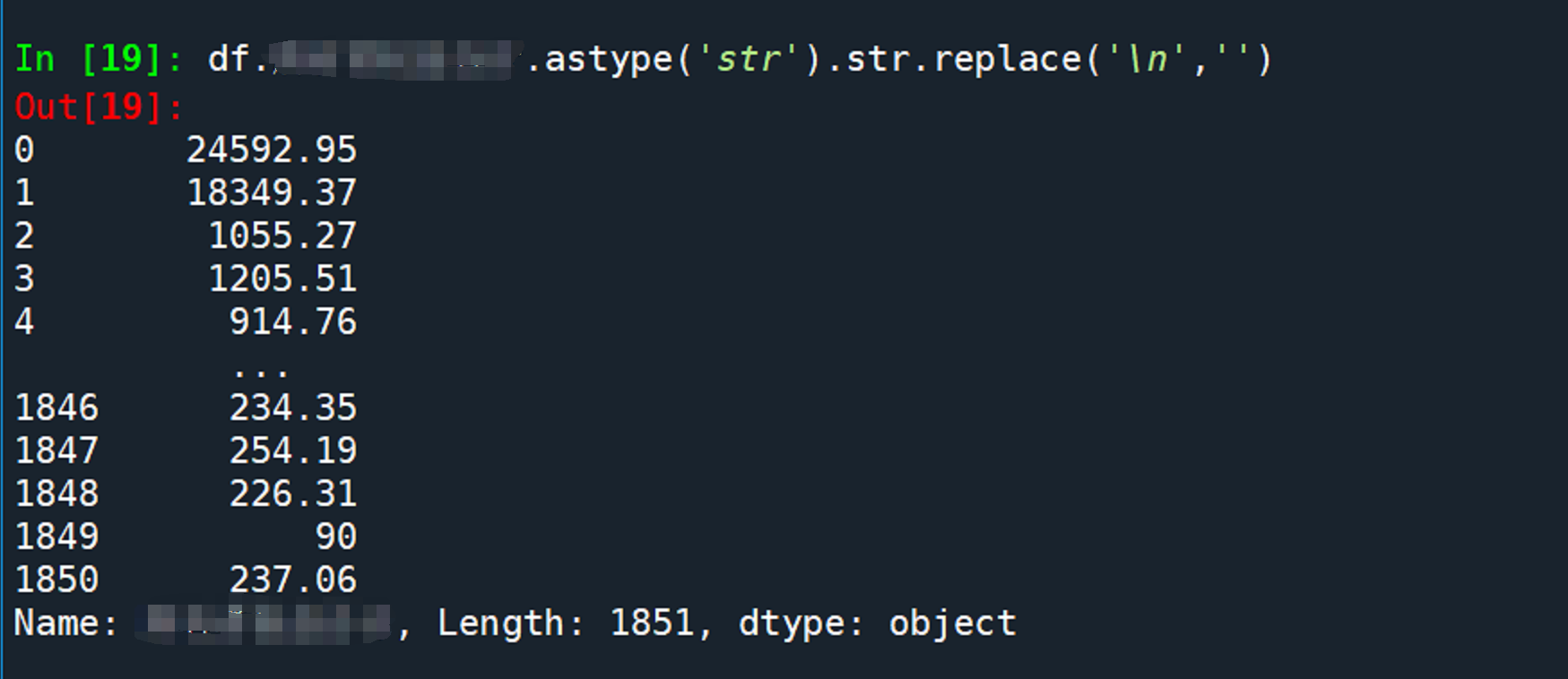我想除去某列数据中的'\n',使用lambda结合replace处理报错,如何解决?