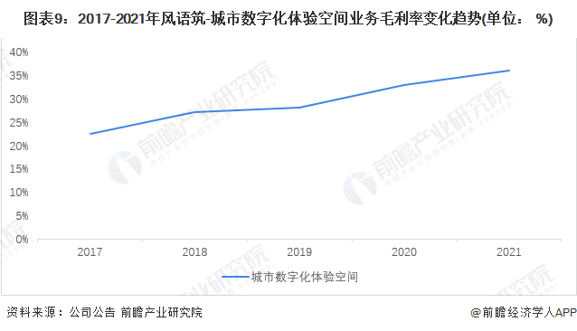 在分业务毛利率方面,2017-2021年,风语筑城市数字化体验空间业务毛利率呈上升趋势, 2021年为35.98%,相比2020年提高3.02个百分点。