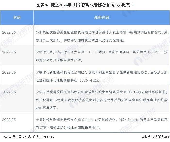 从2022年1-5月份以来宁德时代在新能源领域的布局来看,可以用多点开花来形容,国外布局方面与欧洲多个企业达成战略合作伙伴关系,并获得了德国动力电池系统证书。与此同时还与国内省事签署合资协议,助力国内新能源产业发展更上一层楼。