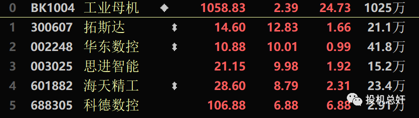 工业母机:国家发改委今日消息,发改委、商务部等六部门印发《关于以制造业为重点促进外资扩增量稳存量提质量的若干政策措施》提出,在先进制造业和高新技术方面,重点鼓励外商投资高端装备、基础元器件、关键零部件等领域。深市首批工业母机ETF将于明日上市,这是深市首批工业母机ETF。
