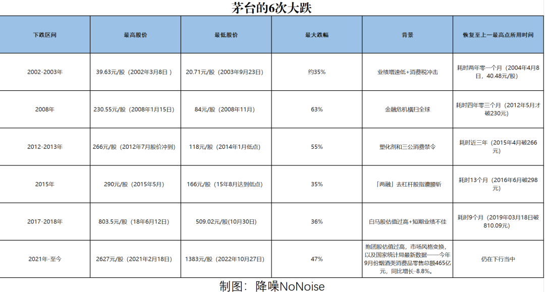 如果真要从茅台的几次暴跌中寻找什么规律,那可能是资本市场没有永远的神话,茅台也难逃经经济周期。