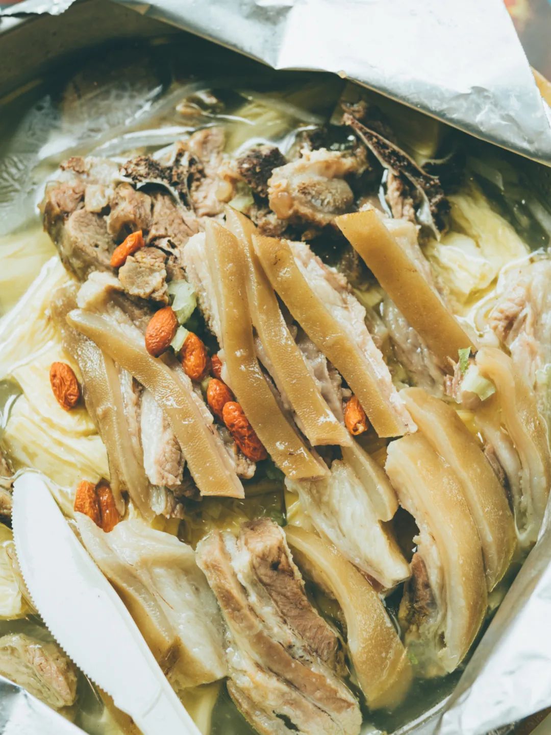 中国古籍里出现频率最高的食物是“羹”。这是一种长时间水煮食物获取的,浓稠的汤,既能果腹,又能解渴。《孟子·告子》中记载 “豆羹”、《韩非子·五蠹》记载 “藜藿之羹”,这些都是先秦时期最普遍、最平民的食品。仔细拆分“羹”字,会发现它由“羔”与“美”组成。羔,即为未成年的小羊,特点是肉质鲜嫩、松软、肥腻,容易炖烂,美味甘口,膻味较弱。对贵族来说,由小羔羊肉烩成的“羹”,是代表品味和身份的食物。