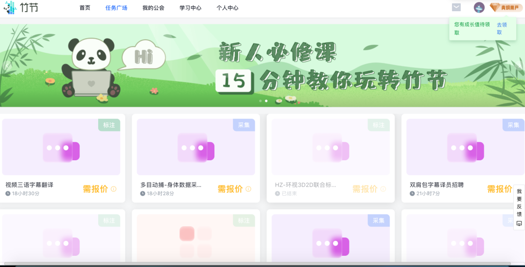 值得注意的是,虽然竹节没有学历上的硬性要求,但是其众包任务也带有一定的专业性,所以参与报名的用户,需要参加平台的课程学习和考试,合格后方可加入公会,参与兼职任务。
