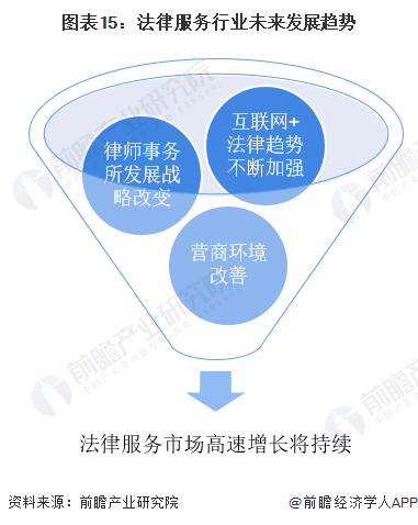 未来中国法律服务行业存在三大发展趋势,分别是营商环境改善、律师事务所发展战略改变和互联网+法律趋势不断加强。
