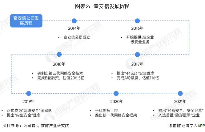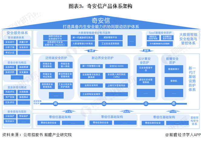奇安信专注于网络空间安全市场,持续的创新研发和以实战攻防为核心的意识成为了该公司的核心竞争力。该公司以“数据驱动安全”为技术理念,以“内生安全”为思想,针对新技术如云计算、5G,为政府和企业提供新一代全面有效的网络安全解决方案。该公司旨在打造具有内生安全能力的协同联动高安全系数防护体系。