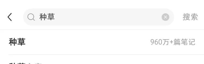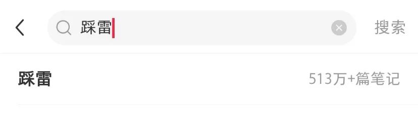 以种草典型平台小红书为例,在搜索栏输入“种草”二字,便会看到“960万+笔记”的数据,而输入“踩雷”二字,相关的笔记数量在“530万+”。