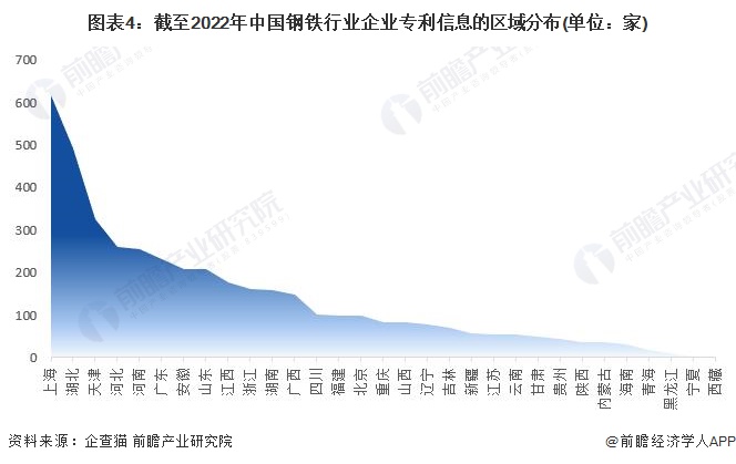 根据中国企业数据库企查猫,目前中国钢铁行业有相关专利信息的企业主要分布在上海市和湖北省等地。截至目前,上海市共有618家企业拥有专利相关信息,而湖北省则有492家企业拥有专利相关信息。