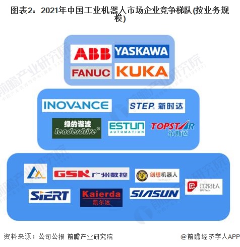 从目前中国工业机器人竞争业务规模来看,第一梯队仍然是被“四大家族”所占据,且企业在工业机器人行业内具有多年沉淀发展,无论在中国还是全球都具有明显的规模和技术优势;在第二竞争梯队中,主要由中国上市企业组成,埃斯顿、拓斯达和绿的谐波等在工业机器人产业链垂直延伸领域拥有一定的行业经验。