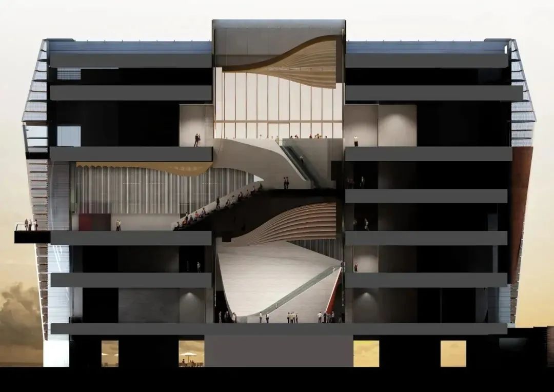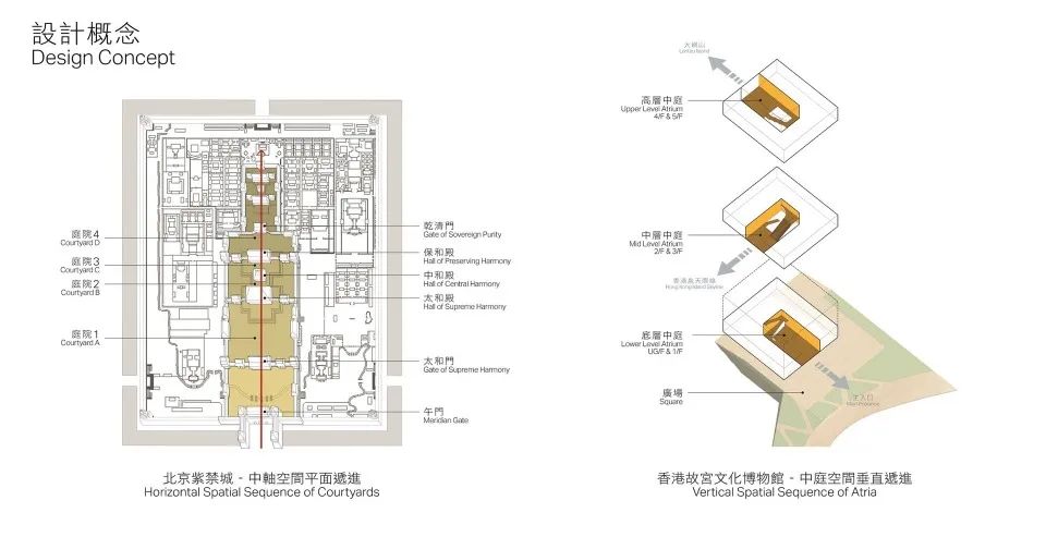 这一建筑理念也启发了严迅奇,因香港土地有限,他把中轴线向上延伸,垂直递进,巧妙地将9个展厅安排在不同楼层。