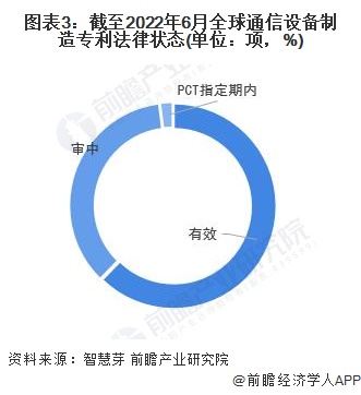 截至2022年6月16日,全球通信设备制造大多数专利处于“有效”和“审中”状态,两者通信设备制造专利总量分别为162741项和93277项,占全球通信设备制造行业专利总量的62.30%和35.71%。PCT制定期内的通信设备制造专利数量为5215项,仅占全球通信设备制造专利总量的2.00%左右。