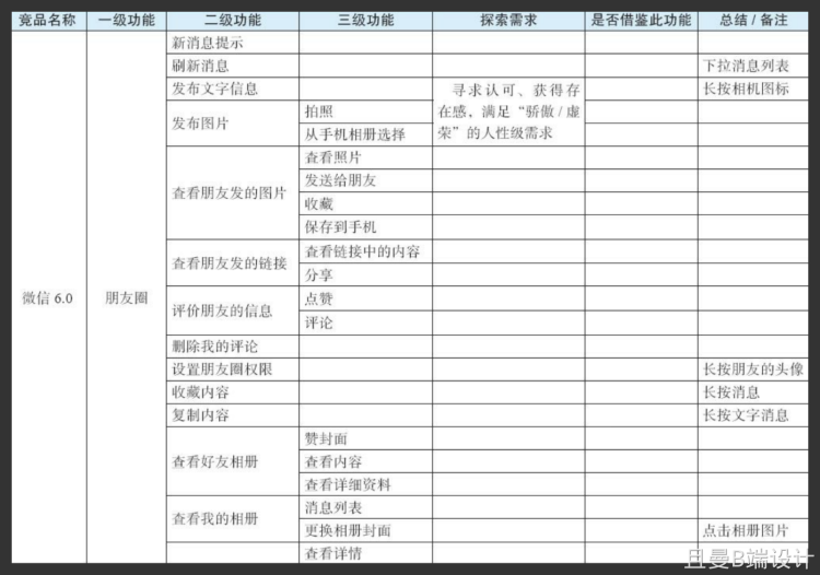 微信 6.0 朋友圈功能分析表: