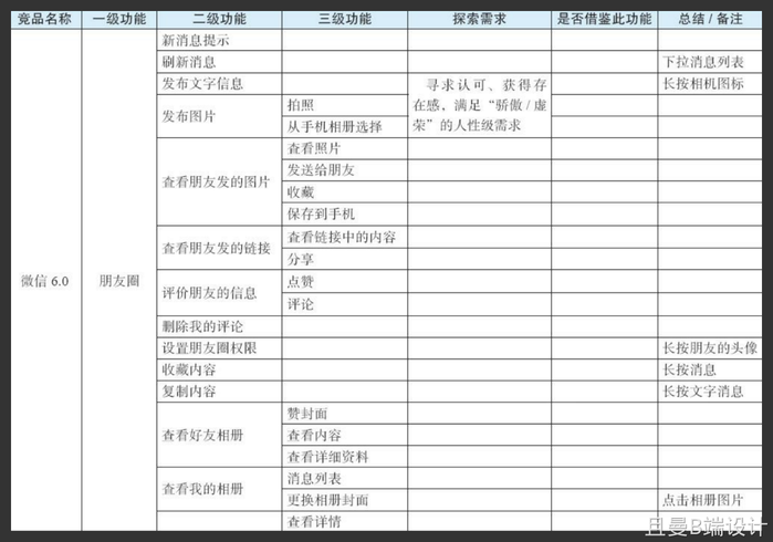 微信 6.0 朋友圈需求探索分析表: