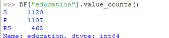 另一个有用的方法,如果value_counts()可以计算分类属性值系列中每个类别的计数。例如,假设您正在处理客户数据集,这些客户在列名称年龄下划分为年轻,中等和旧类别,而您的数据框架为“DF”。您可以运行此语句以了解有多少人属于各自的类别。在我们的数据集示例中,可以使用教育列