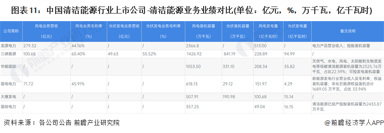 本文核心数据:主要上市企业清洁能源装机容量、业务占比