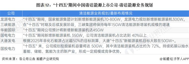 4、清洁能源行业上市公司清洁能源业务规划对比