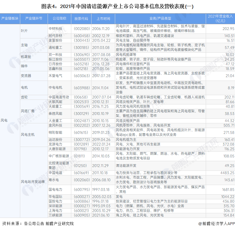 我国清洁能源生态圈中参与企业甚广:风电领域的上市企业主要有中材科技、双一科技、日月股份、禾望电气、金风科技、明阳智能、中广核新能源、大唐新能源、北控清洁能源等。