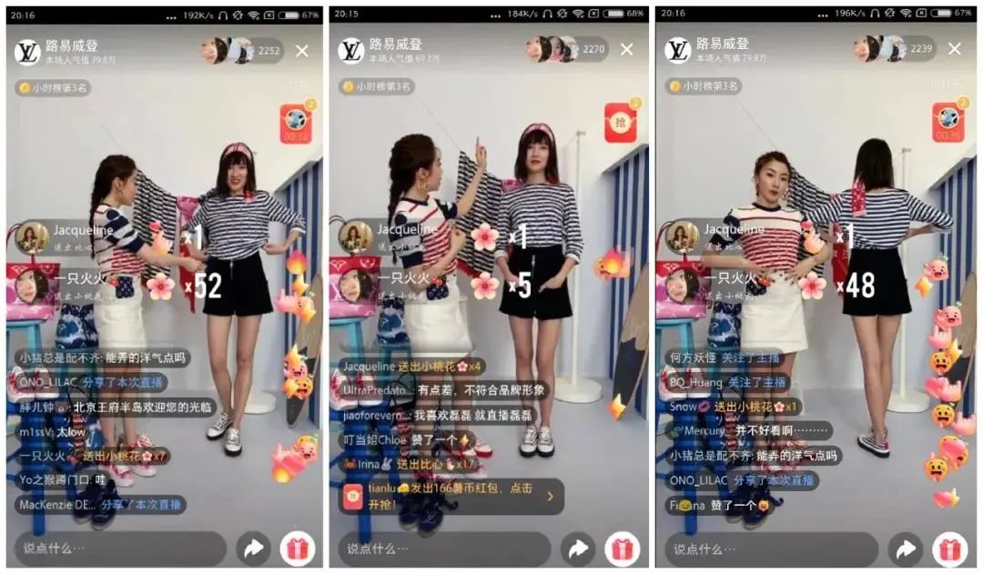 随着直播带货风头正劲,小红书不得不重新正视电商这条“来钱快”的赛道。2017年,小红书首次正式参加双十一。2019 年末,小红书开始切入直播赛道。2020年3月,LV在小红书献上了直播首秀,邀请了钟楚曦和时尚博主程晓玥进行直播讲解,这也是奢侈品首次以官方账号进行直播,开播半小时LV冲上直播榜首,直播间人气值超过600万,整场直播互动率达到33%。从数据角度而言,这或许算得上是一场“出圈”的直播,但就观看体验来说,直播间内的布景、打光都在当时备受争议,不少网友认为 “有点差,不符合品牌形象”,还有人质疑“能弄得洋气点吗”。