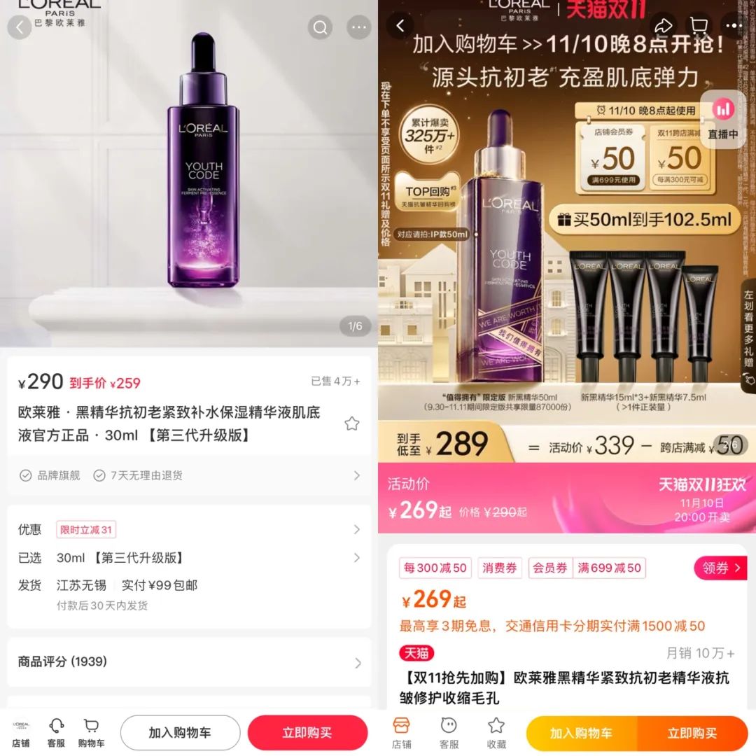 在优惠力度上,小红书拿出了跟其他电商平台一样“300-50”的满减诚意,但入驻的官方品牌有限。以美妆护肤类为例,雅诗兰黛、SK2、兰蔻等多个国际大牌都未入驻小红书,而是以官方自营的“福利社”或是第三方卖家店铺的形式进行售卖。部分以官方旗舰店形式入驻小红书的品牌如欧莱雅,在价格上并没有显著优势。以某款欧莱雅精华液为例,在不包含赠品的情况下,小红书每毫升活动价高于天猫2.85元。