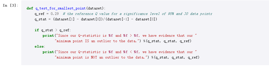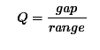 对于我们的示例,Q统计量是集合中最小和最接近数字之间的绝对距离与数据集范围的比率。 这意味着: