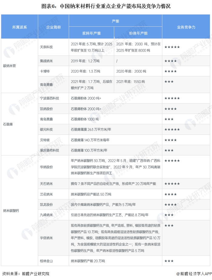 本文核心数据:碳纳米管市场份额;石墨烯/纳米碳酸钙市场排名;纳米材料重点企业产能布局