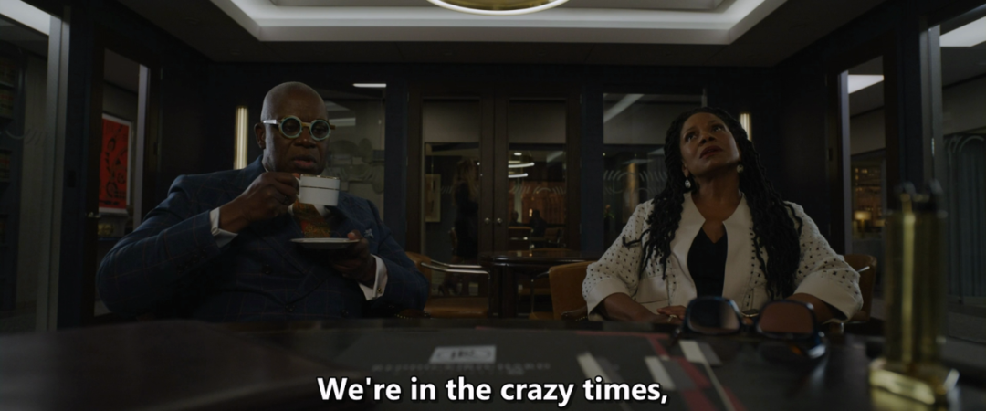 在2019年,对激化现状最悲观的反应里,季末出现过球状闪电,梅丽莎发出了「末日真美」的兴叹。而到了这一季,从为了正义无所不用其极的反省,早已到了无法构建正常社会的疯魔,戴安在致幻观感里的鲜花、俊男、离地飞升,是对身处的暴乱明喻的短暂逃离与反向书写。而这两年更放飞的,是民间社区法庭的壮大,是黑人组织对「白人至上」拥戴者的盛大反击,是互联网大佬试图买断共和党喉舌FOX,甚至买断疲软的民主党,是让巨石强森参选总统,是巨石强森如同神迹的身体疗治,是一切不可思议的事情,竟然「合情合理」。