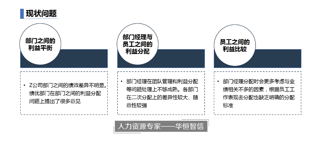 不同部门经理对于经理和员工之间利益分配上的想法差异也比较大,有人认为是由于自己领导有方、资源较多,部门才能取得好成绩,自己理应占大头;但有人认为部门业绩是部门团队共同努力达到的业绩,因此应该给员工留多一点,导致各部门在二次分配上的差异性较大、随意性较强的问题。